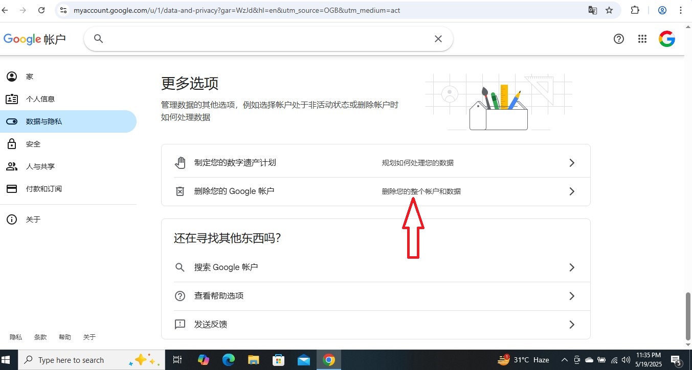 删除帐户后,您将无法访问优兔、云端硬盘和日历等服务。